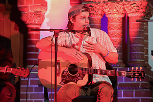 The show started right in time on 19:00 with an introduction of the artists. They finally agreed that, in the perspective of the audience, they did any of the five rounds of songs from left to right. There was no intermission, so that this kick-off event almost lasted two hours. Max McNown opened the videos on the unique stage with one of his earliest releases, Freezing in November. Isaac Gibson chose Damn Darlin’ as his opener. Charlie Worsham commented on it that it was a perfect song for the church setting of the evening – but would also work in a German beer hall. He chose a “church song” by himself, going with How I Learned To Pray. Dasha was last in this round, kicking off with her second part of the Austin saga.