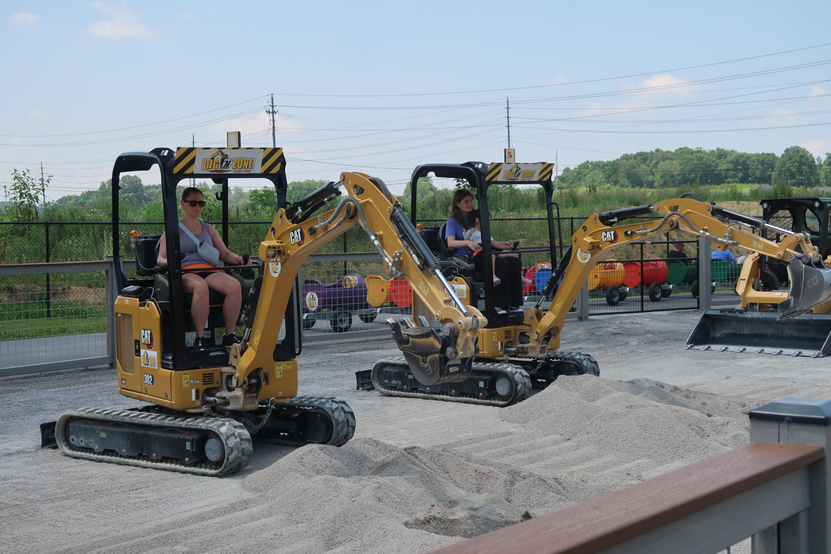While many of the attractions are riding experiences with different vehicles, especially especially the CAT 301.5 and CAT 302 also offer other options. At Dig’n Pit, you can in fact dig with the small excavators, while other attractions like Later Gator test your dexterity. At that attraction, for example, you have to catch and return plastic gators in the style of a fishing game. Especially these attractions lead to a surprising lot of fun during my visit. Smaller visitors can also ride pedal cars. The most unique attraction of the park is indeed The Decimator. As Dig’n Zone’s replacement for a rollercoaster, a CAT 320 spins and turns you on this carousel ride.