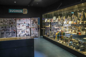 The museum is located in Ideapark, a large shopping mall in Lempälää, a city South of Tampere. Apart from stores of all kind, the mall hosts Bläk Boks, the home venue of SC Classic. The museum is located in the corner of the arena, right next to the rink. The interactive screens in the mall tell you the locations. There is also a sign in front of Bläk Boks, which is telling you the route to the sports museum.