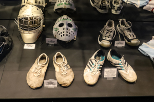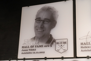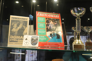 The rear wall ilustrates the development of the sports in Finland. There are some newspaper articles and old pictures, which are reviving valuable memories. Of course, the articles are in Finnish, so that you either need to use a translator or are a bit of stuck if you do not happen to speak the local language. A very interesting part is the Finnish Floorball Hall of Fame. There don’t seem to be too many recent inductees, but it does include some real legends like Janne Tähkä or Nina Rantanen (Rantala). It is cool to browse through personalities who impacted the sports that much.