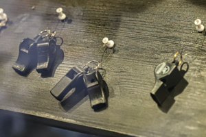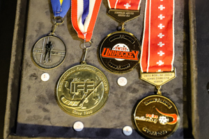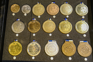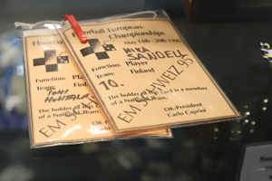 The Salibandymuseo is in fact one major room. When you enter, your first view is likely on the large glass cabinet on the right. It hosts a lot of floorball memorabilia, including cups, but also sticks, shoes and other equipment. There are even some historic accreditations. Pictures honor the biggest success stories, especially at World Floorball Championships. Obviously the Finnish Floorball Museum concentrates on salibandy in Finland and the Finnish National Teams. I also liked that they had a certain focus on floorball referees. There is also a smaller showcase, which felt to focus on certain players. The box in the middle of the room also included some original medals.