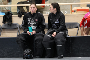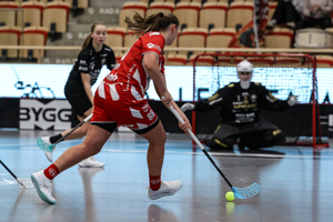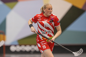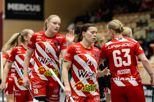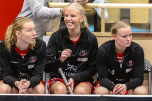 Pixbo’s staff simply could not be happy with that match. The number of training jackets worn after the intermission showed that they would now play with their two top lines only. Already at the beginning of the period, this lead to remarkable success. Emma Heander’s goal in the third minute was just eight seconds after Lundin had already raised the lead – Pixb now lead by three goals, 7-4. With Alma Kilpeläinen adding the eighth goal in the 48th minute, the match felt decided, the third Pixbo row came back into the match. Lara Heini thereby enjoyed the very special taste of music by the Pixbo DJ on the bench.