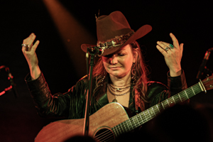 The intermission was not too long and Kelsey Waldon stepped on stage around 19:45. Her set started like her latest album, with Ghost of Myself. The 18 song set almost took 90 minutes. Remarkably, Waldon had a full band set, her first time like that in Europe. Despite the limited audience, she and her band were very energetic from the very beginning. Despite her rather traditional sound of her songs, there also were rather rocking elements. After Peace Alone and Kentucky 1988, she introduced her band members.