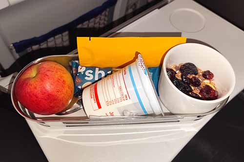 The food onboard was nice, based on the fact that it was a 25 minute flight. An apple, a yogurt with some cereals and a breakfast bar was not too bad. I also liked the frendly service of the crew.