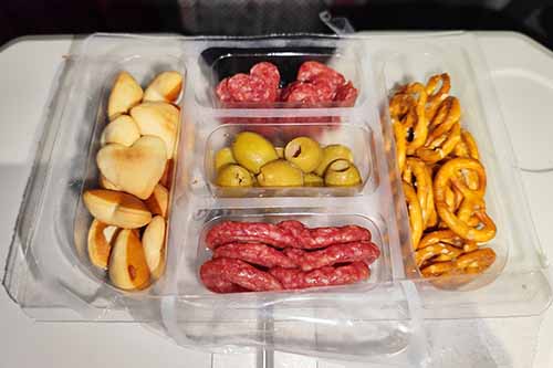 My trip to the Winter Olympic Games in Milan started with a short Eurowings flight to Malpensa (MXP). From a food perspective, nothing too thrilling. The turkey salami sandwich, the cookie and the lemon-mint drink had all been stuff I had on my Dubai flights before. The crew was pretty solid on this rather short flight within Europe.