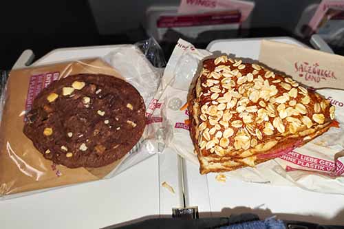 I had played the Eurowings game too often the weeks before, so that I just did not feel having another sandwich on my return from the Swiss Floorball Cup Finals. Thus, I just had a banana bread, a Snickers and the mint-lemon infused water (I just don’t get tired so far). The crew was overall nice, even though the service was a bit of limited. The First Officer obviously had one of his first passenger flights. Thus, he had brought in some family members, who he especially greeted in his announcement – very sweet! The crew got cake for that occasions – so I absolutely agree that you sometimes need to set other priorities in the cabin.