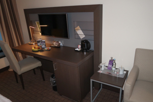 The staff was very friendly and welcoming. After I struggled with the branding and the services at the IntercityHotel Bremen the weekend before, I was also prpperly welcomed as a status member of their loyalty program H-Rewards, including a 10 Euro food / drink voucher. The complimentary WiFi worked very well.