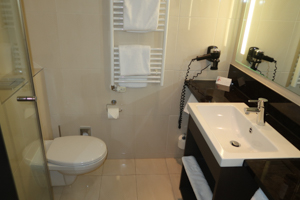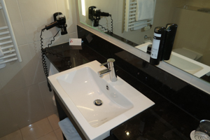 The bathroom had a nice size and also offered sufficient space for your personal items. Amenities were provided in dispensers. Like the whole room and hotel, the bathroom felt well maintained and clean.