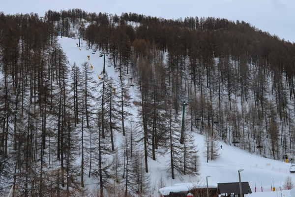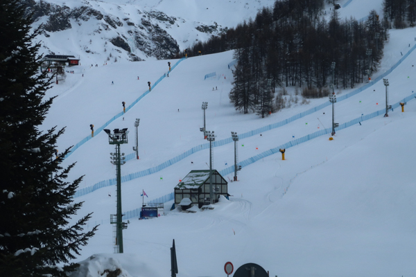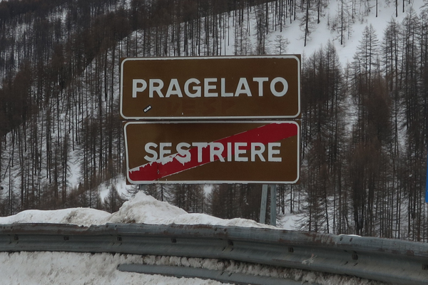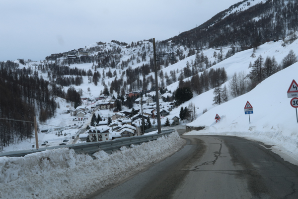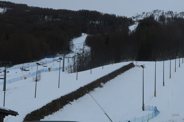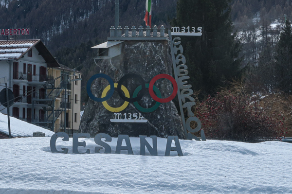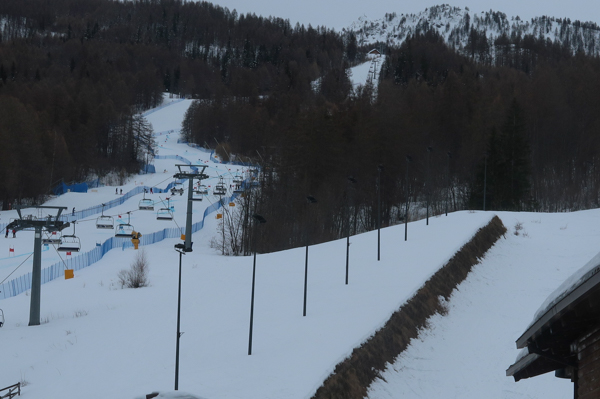 San Sicario Fraiteve on top of the Cesana Torrinese hills hosted the women’s Alpine Skiing events. You can still see the finish line area nowadays. As that would have required parking fees, I skipped stepping out here. The area is still very popular for skiing.
