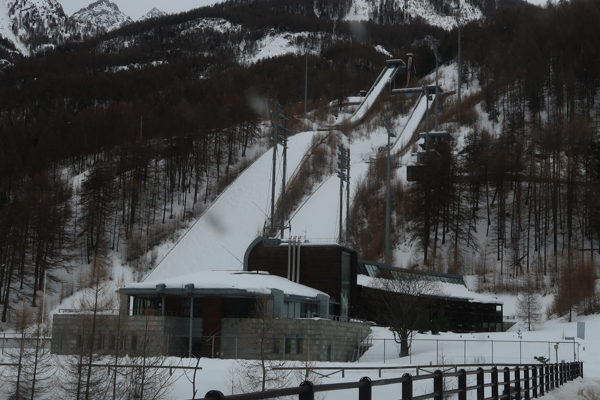 Pragelato was one of the central locations of the competition. It hosted all Nordic skiing competition, i.e. ski jumping, Nordic combined, but also cross-country skiing. You can still see the cross-country skiing facilities, but the ski jumping hill is more striking, obviously. The hill also features minor jumps, K15 to K60. Nowadays, none of them is used. The Olympic jumps, K95 and K125 have been abandoned in 2010 already, the junior hills towards the end of the decade. There is some redevelopment to host biathlon events in Pragelato, though.