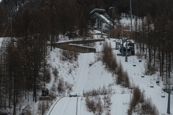 Apart from Sestriere, Cesana is likely the most prominent host city of the 2006 Winter Games nountain events. A memorial is still located at the city’s main roundabout. Cesana Torinese hosts multiple Olympic venues at different spots. The one closest to center of the 1,000 people village is the ice track at Cesana Pariol. Obviously, it hosted all ice track events. However, the 110m Euro investment did not really pay back. There were world cup events until the late 2000’s. Later the track was closed down and deactivated. It was a candidate for the 2026 Games, but finally has not been renovated.