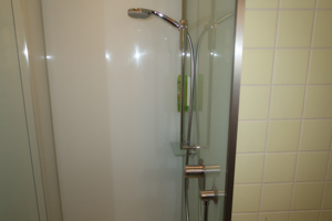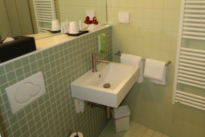 The bathroom was in line with the remaining room: not an absolute beauty – maybe even less than the living/sleeping area – but well maintained and functional. Basic amenities were given in dispensers. The bathroom also features sufficient space for your toiletries, so that I overall really liked the experience.