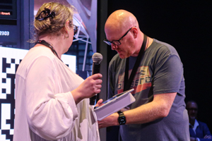 Rachel Philipps., wife of Noel, was in charge of the host role for the event, also keeping track of the schedule. Overall, the event stayed within the given time frame, opening doors a bit earlier than expected and running a bit out of time towards the end. A key factor for that were long lines at the most popular creators as well as a much higher number of bids than expected in the silent auction. Like other proceedings, the gains from this auction have been donated to the American Cancer Society – so that the Av-Con 2026 even served a charity cause.