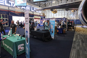 While the content creators were majorly located on tables under and around the B767 (which was, unfortunately, a bit of dark…), sponsors and exhibitors were located in the front of the venue, close to the panel stage. I would have loved to have some more aviation memorabilia vendors in Atlanta, but nonetheless, the mixture was really nice. From 3D-printed airport souvenirs to shirts, and aviation information and logging software, there were companies from quite many parts of the world. You could even inform about the travel insurance appropriate for your needs.