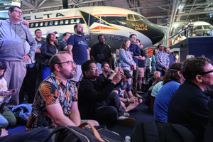 I arrived at the Delta Flight Museum at around 9:15, when there were already some 100 people in line at the entrance. The organizers decided to open the doors early. Even though the Spirit Hangar was not ready for the event at that time, this has been a wise decision. With the first panel sessions to take place slightly later, the lines at the different creators built up quickly. There were multiple reasons for it. First of all, the Av-Con debut hoped to for some 300 to 400 visitors – finally, there were over 1,000 in Atlanta on that Saturday. At one point, the lines were even reaching inside the Legacy Hangar.