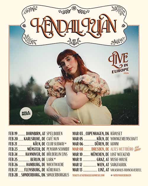 The Oregon-origin alternative folk artist Kendall Lujan is playing European shows in February and March 2026. Definitely worth visiting!